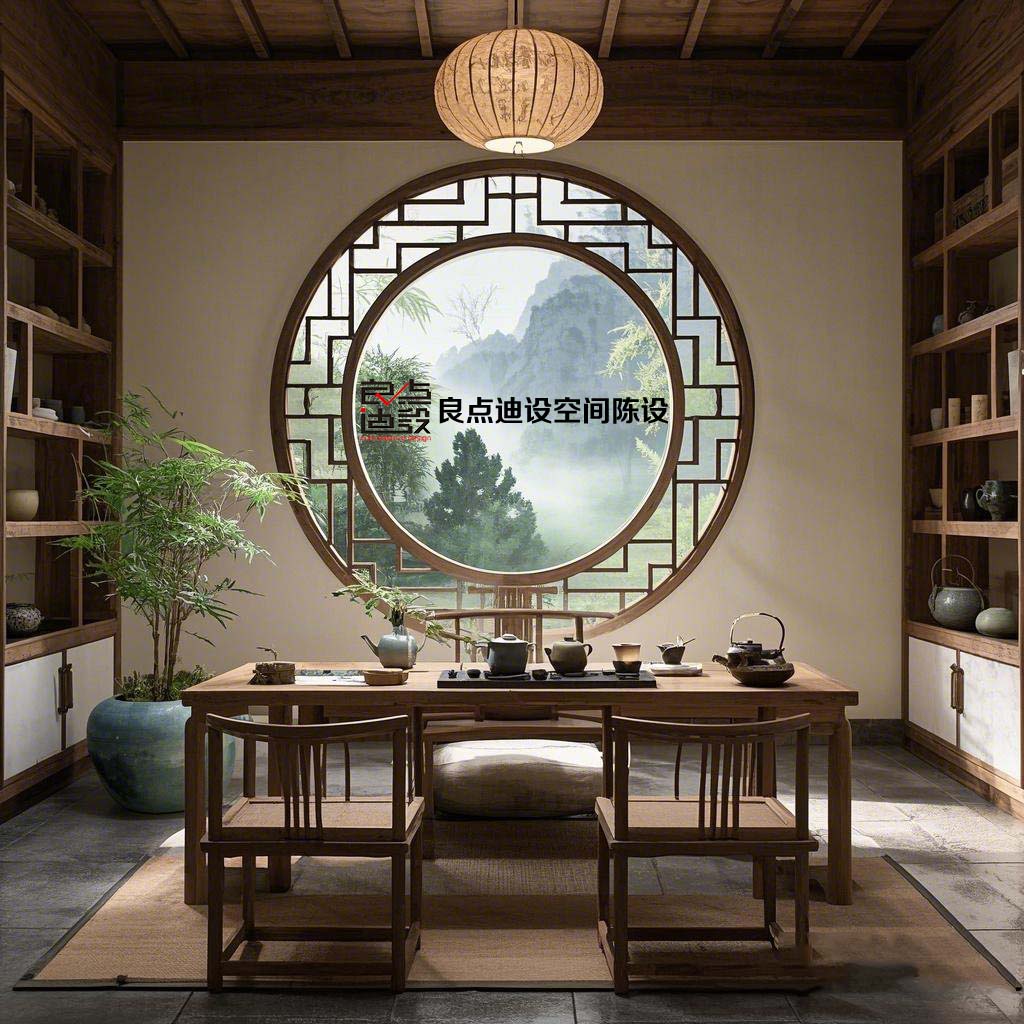 圆形漏窗+竹影杀疯了!这家茶楼茶室把新中式装修软装设计焊进DNA