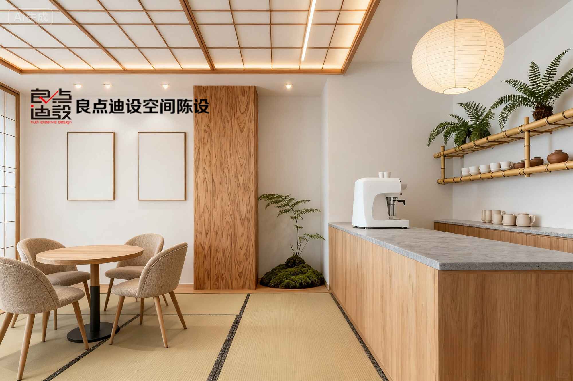 姐妹们!今天挖到一家宝藏咖啡店装修软装设计——暖黄榻榻米、原木家具、竹编层架和绿植的搭配,简直长在审美点上!这氛围感说是在京都都有人信,赶紧来唠唠这组软装神操作??