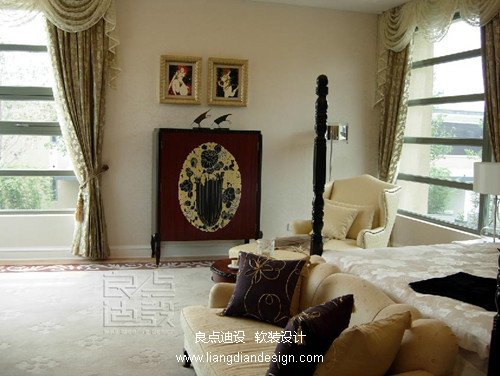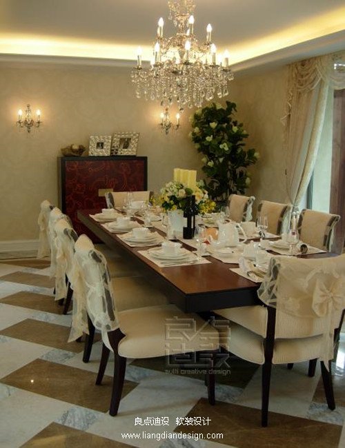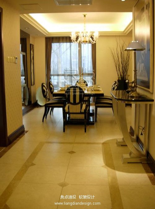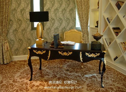 本案运用新古典风格,新古典风格是将怀古的浪漫与现代人对生活需求的相结合,兼容华贵典雅与时尚现代,反映出后工业时代个性化美学观点和文化品味,在家具配饰上色彩典雅,造型上保留传统的文化底蕴,同时摒弃了过于复杂的机理和装饰,沙发素雅的布面与柔美的线条结合,营造出一个即优雅又惬意的空间,黑白搭配的餐桌餐椅使餐厅彰显大气,精致的餐具花艺点缀出细腻优雅,书房运用三弯腿描银书桌使空间彰显华贵风范,卧室运用柔和米色棉麻质地并搭配同色系靠包,使人感受自然舒适。