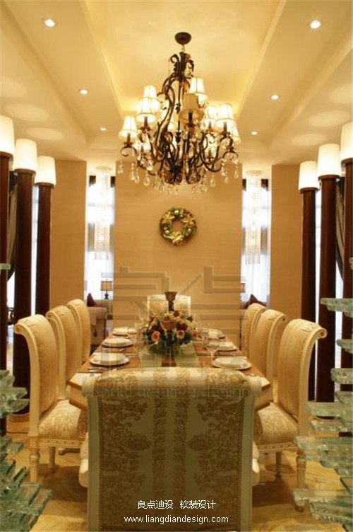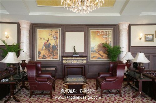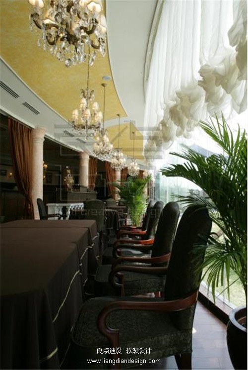 西山美庐会所,多种款式高低搭配的美式皮制钉扣沙发,给人们带来一个舒适的放松空间,大气的宴会西餐厅与之相对,精致的水晶灯显现出皇家高雅气质,整个空间如气势磅礴的交响乐般让人流连。