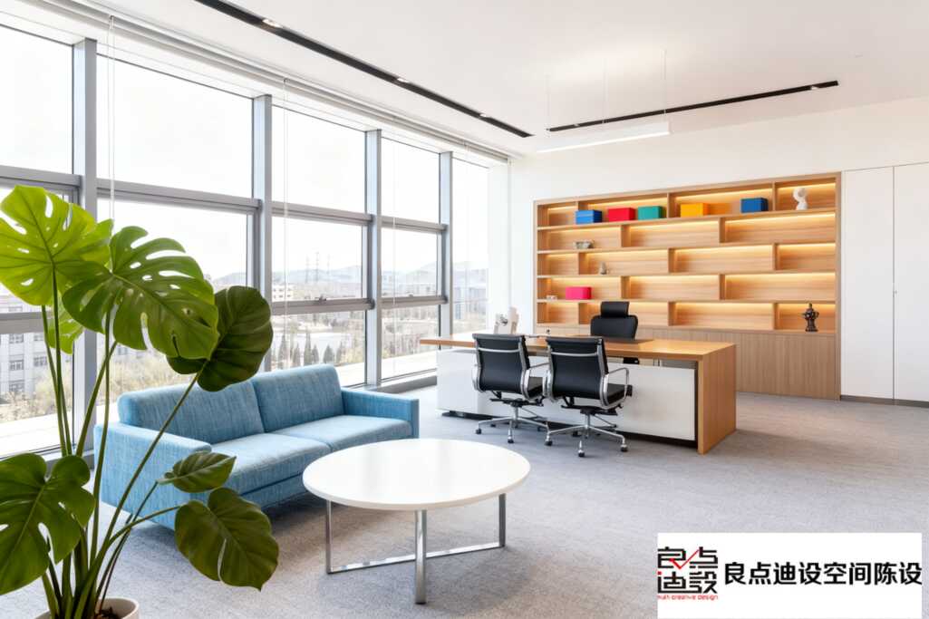 灵魂点缀色: 别怕单调!大胆用企业品牌色(活力蓝、生机绿、元气黄)!LOGO墙、单椅、装饰画、抱枕...小面积点缀,吸睛指数爆表!记住,少即是多! 或者像案例里那样,用一抹亮红/黄的储物柜,直接变身空间焦点!
