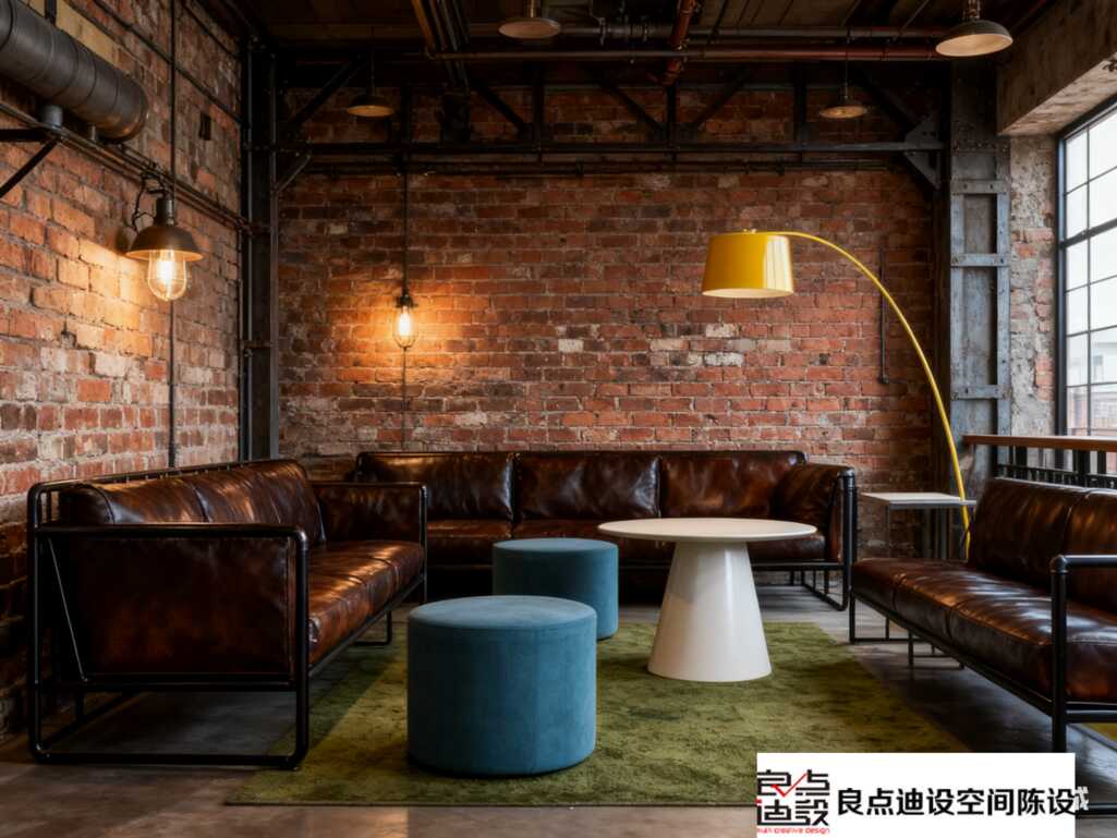 ?? 1. 软装C位搭配:金属+皮革+木纹YYDS! * 金属元素: 别只盯着水管灯!* 皮质沙发/单椅: 休息区、老板椅安排上!棕色、墨绿皮质是工业风的灵魂伴侣,一摆进去,复古摩登那味儿就有了!磨砂皮更显高级。 * 温润木纹中和: 工业风太硬?原木色桌面、开放木格书架了解一下!浅木色能瞬间注入自然暖意,平衡水泥灰的清冷感。 选有做旧纹理的,别整太光滑!