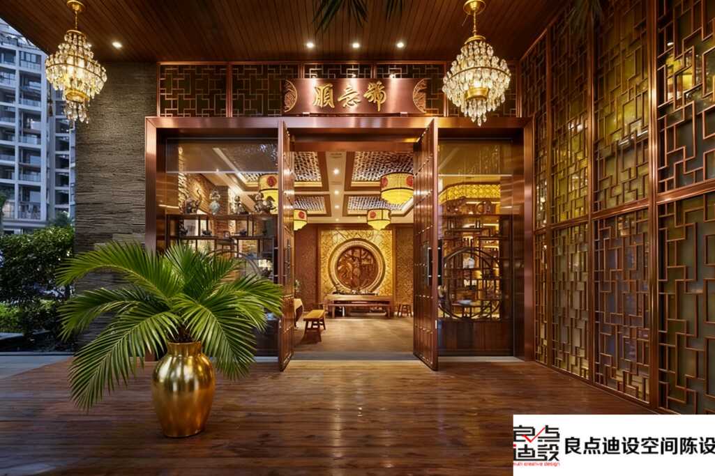 走进茶楼,***眼就被正中央的圆形装饰墙牢牢锁住视线——妥妥的C位担当啊!墙上“順意號”三个大字,搭配精致雕花纹理,古朴中透出大气,瞬间定调了整个空间的中式魂。这面墙不只是装饰,更像在诉说茶文化的深厚底蕴,设计感直接拉满。