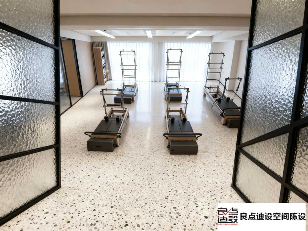 每台普拉提核心床像列队士兵一样整齐划一,金属质感在灯光下绝了? ***关键的是间距留得超科学,教练走位带课完全不会撞到~强迫症患者表示极度舒适!