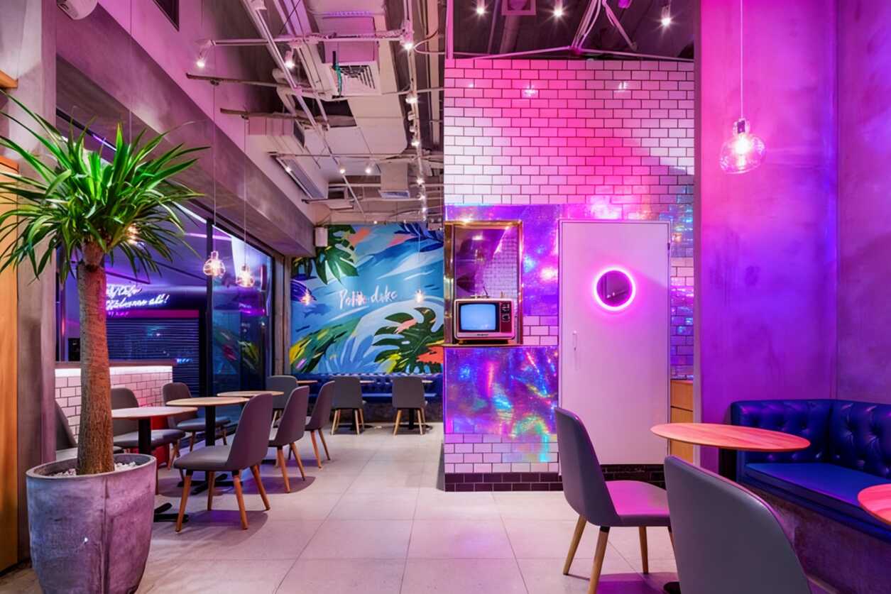 这家"LUCKY"餐厅软装设计太上头!粉紫灯光+热带雨林壁画,随手一拍都是网红打卡照