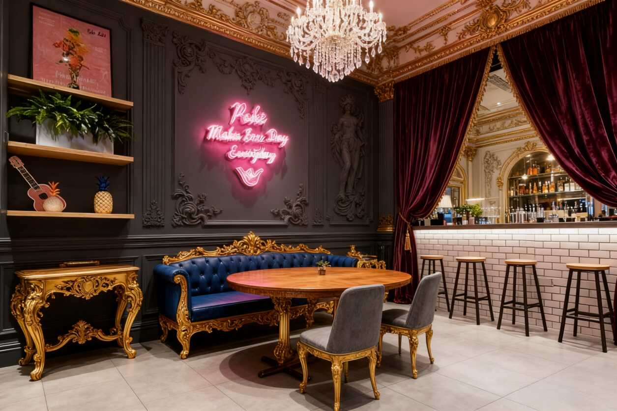 拿捏住了!这家"Rose"餐厅的复古奢华风软装设计,粉金配色直接封神!