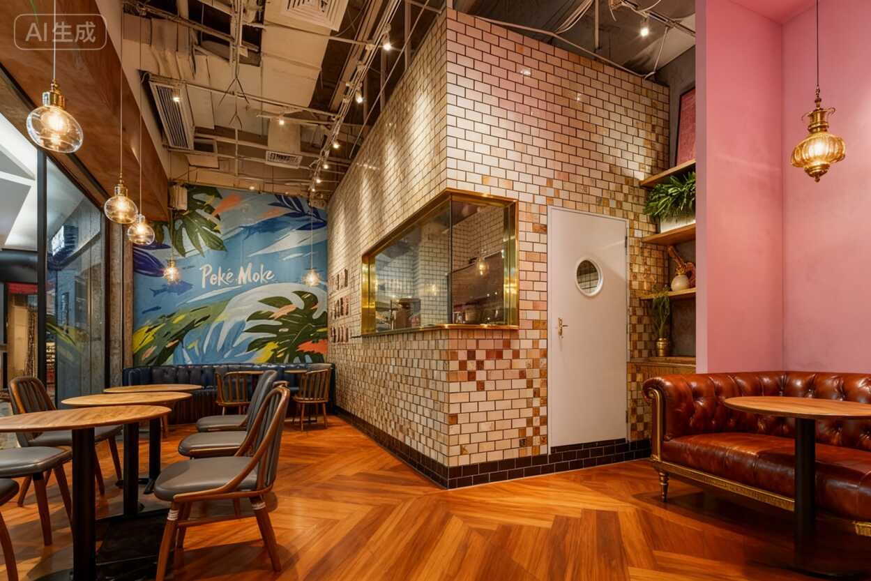 ?? 这家Poke店软装设计太会了!灰墙木架+治愈粉海报,进去就不想走!