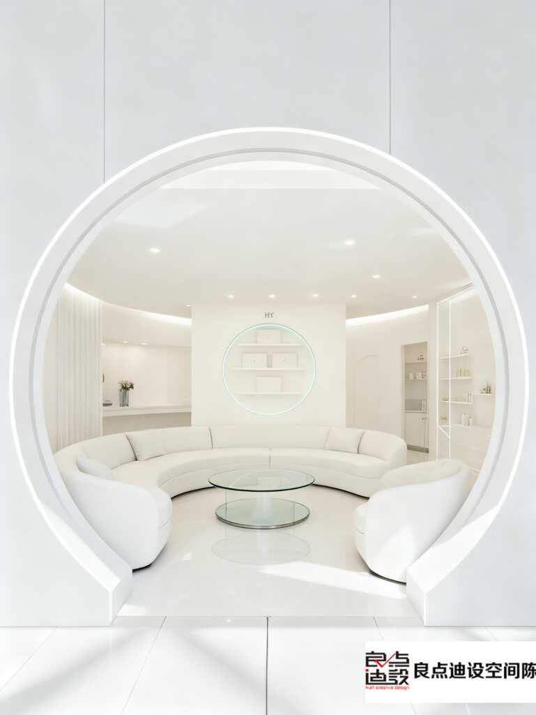 先看入口,那个别致的圆形门框瞬间就把氛围感拉满了。它不像普通门洞那么死板,反而像是一道神秘通道,悄悄告诉你:走进来,就是另一个美丽新世界。这种设计小心机,一下子就能勾起顾客的好奇心,谁不想进去探个究竟呢?