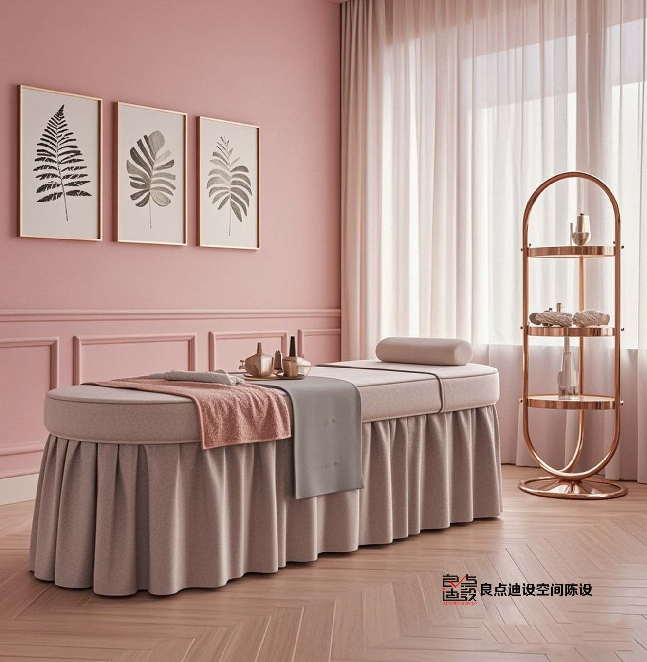 美容间软装设计是为了营造舒适、美观、功能性强的环境,为顾客提供一个放松、愉悦的美容体验。美容间的颜色选择非常重要。柔和的粉色、浅蓝色和绿色是常见的选择,可以给人一种温暖、舒适的感觉。合理的照明设计也至关重要,可以使用柔和的灯光和壁灯来烘托出温馨的氛围。