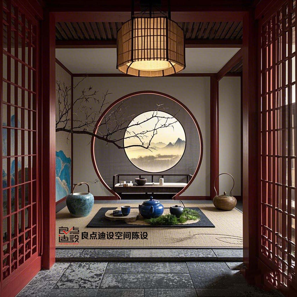 4.配备茶具、茶叶、花瓶、书籍等元素