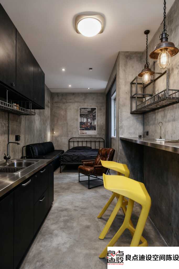 工业风一居室软装设计教科书!冷酷与温暖的***平衡