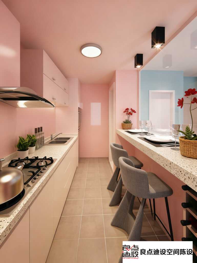 粉蓝碰撞的厨房魔法!一居室软装设计全公开
