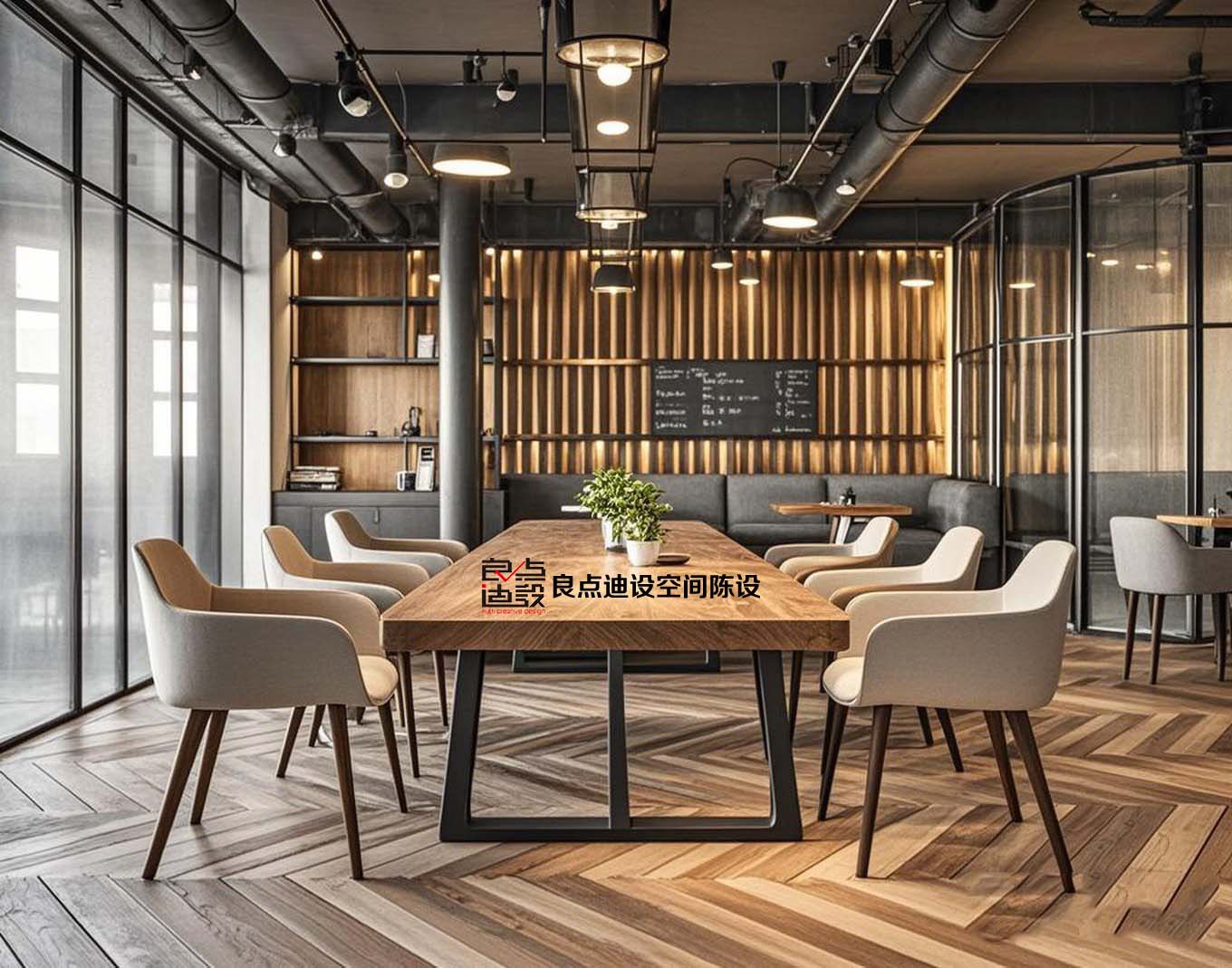重点来了!中央3米长桌才是社交C位。北美橡木桌面搭配工业齿轮吊灯,办公党敲电脑、闺蜜团凹造型两不误。偷偷告诉你:这种开放式布局能让客单价提升23%!(别问怎么知道的)