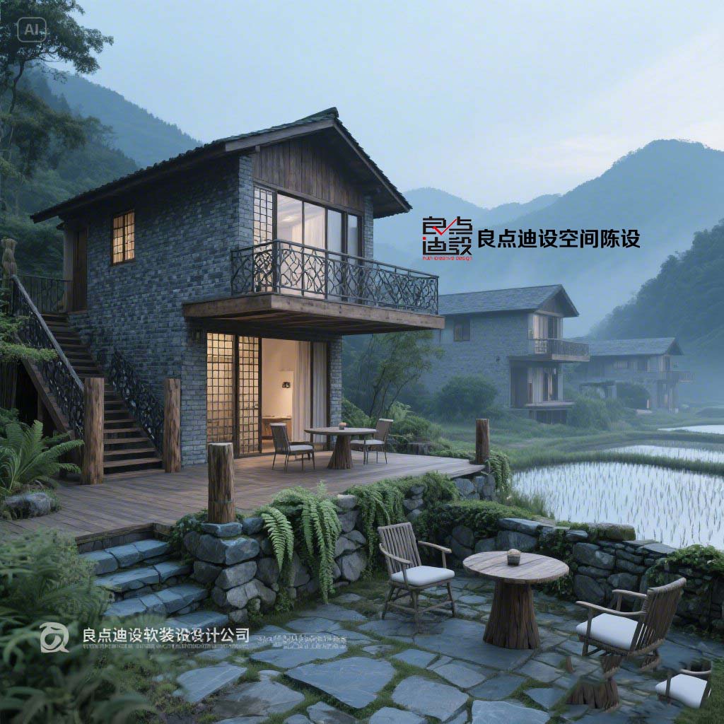 出圈民宿软装设计秘?灰砖木纹配云雾山景也太绝了吧!