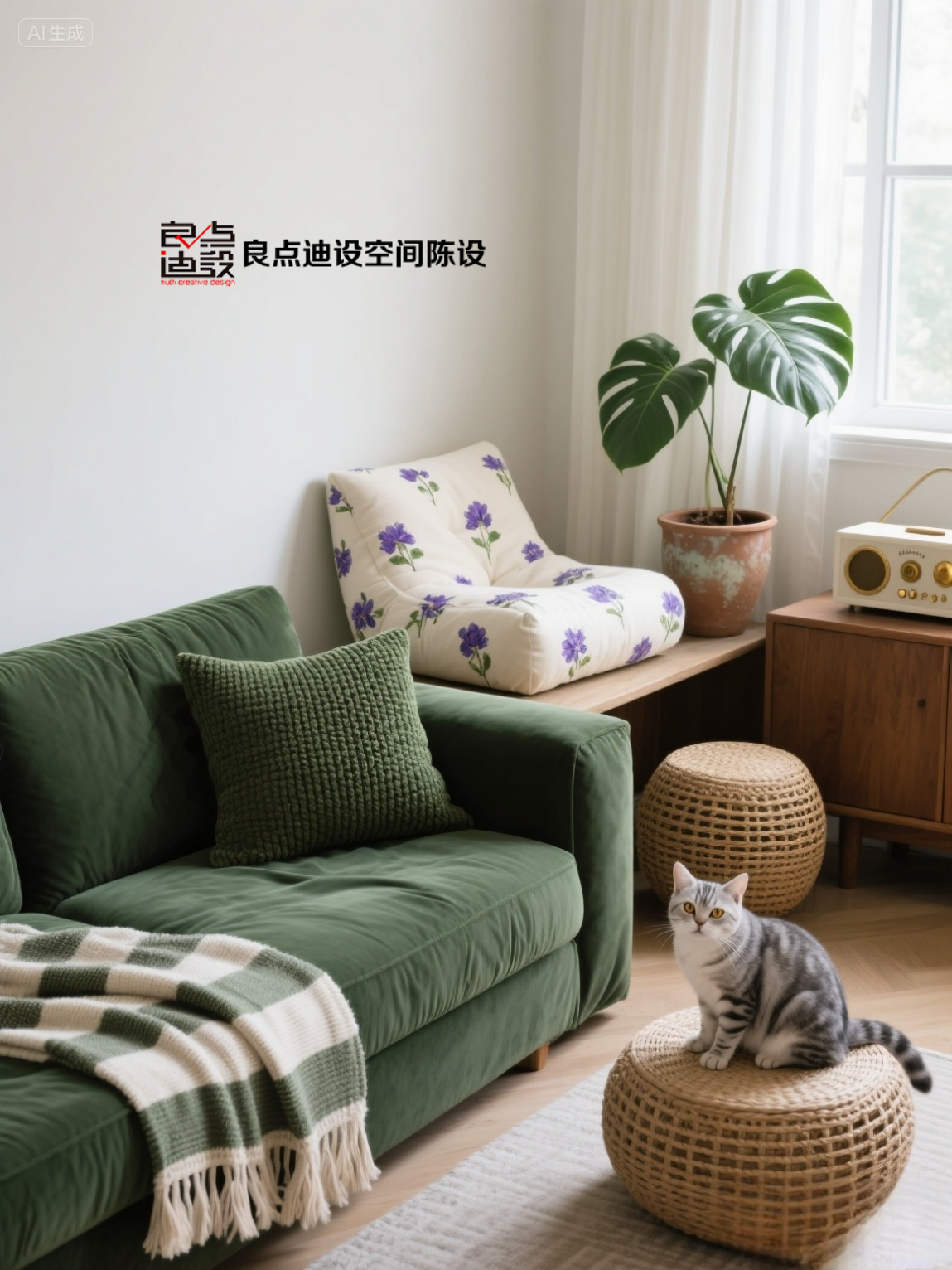 色彩克制: 米、白、浅木打底,加一两个低饱和度主色(如绿、蓝、大地色系),整体和谐不打架。