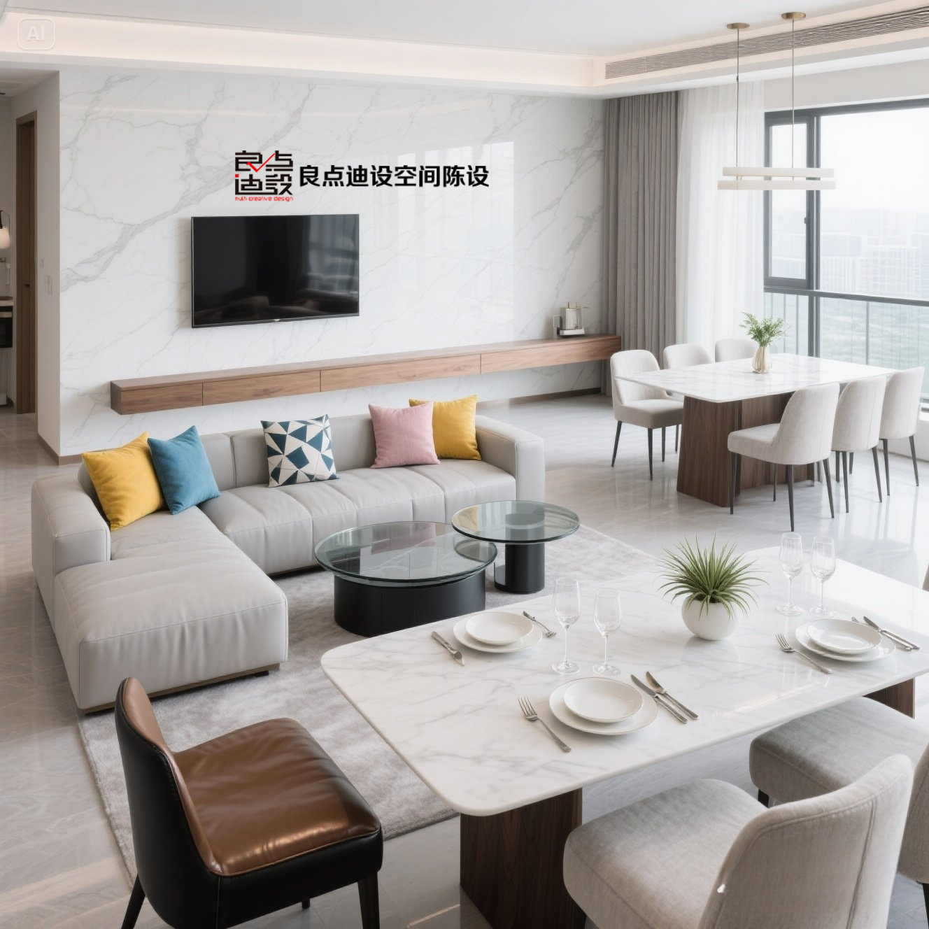 ??轻奢餐厅软装设计被扒疯!大理石+跳色封神搭配