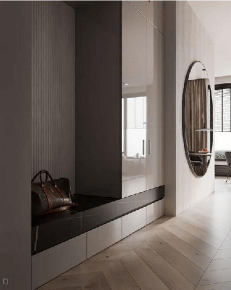 玄关处的装修要集美观度与实用度为一体,鞋柜做到顶设计,***大程度地满足鞋子收纳需求,鞋柜底部留空,方便日?;恍⌒卮Σ晒舛冉先?,在鞋柜底部和留空处设计好灯带,增加玄关处的采光照明。