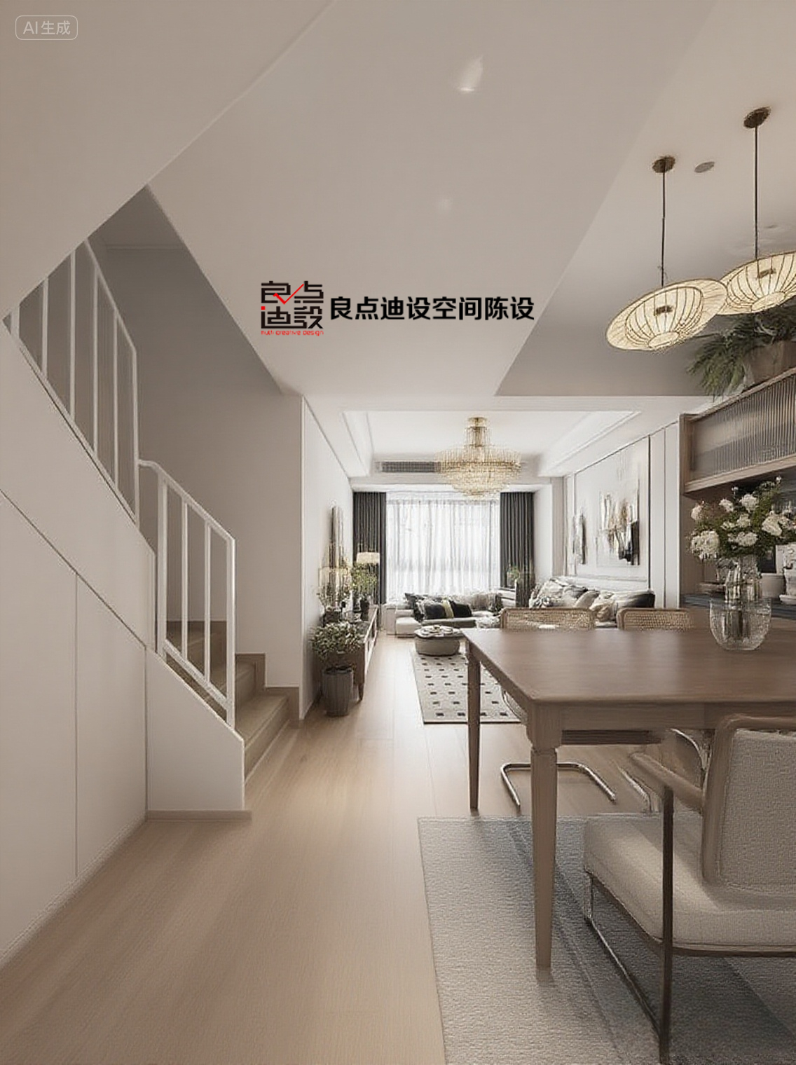 前厅主角:餐桌椅稳了! 别选笨重深色款,浅原木色+细腿设计是灵魂。温润的木纹自然就是装饰,搭块米色系桌布或素色餐垫,氛围直接拉满。旁边设计感十足的纯白楼梯?点睛之笔!利落的线条打破单调,还显层高,这种小细节就得学。